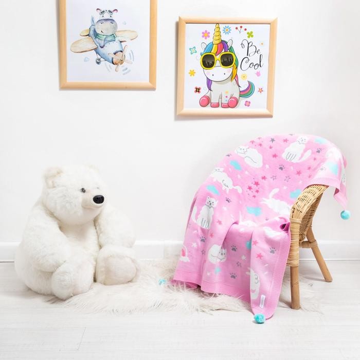 Вязаный плед «Крошка Я» Happy cats, 90×90 см