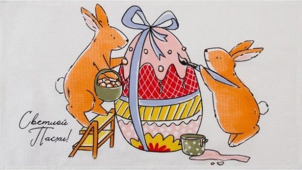 Набор кухонных полотенец Доляна «Пасхальные зайчики», 35х60см-2 шт, 100% хл, вафля 160 г/м2