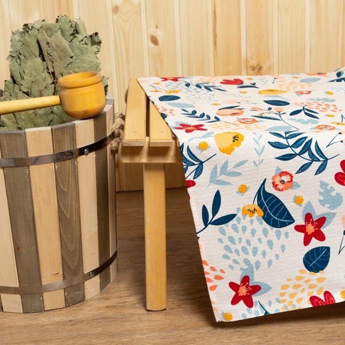 Простыня для бани «Цветочное поле» 150×180±5 см, 100% хлопок, вафельное полотно, 160 гр/м2