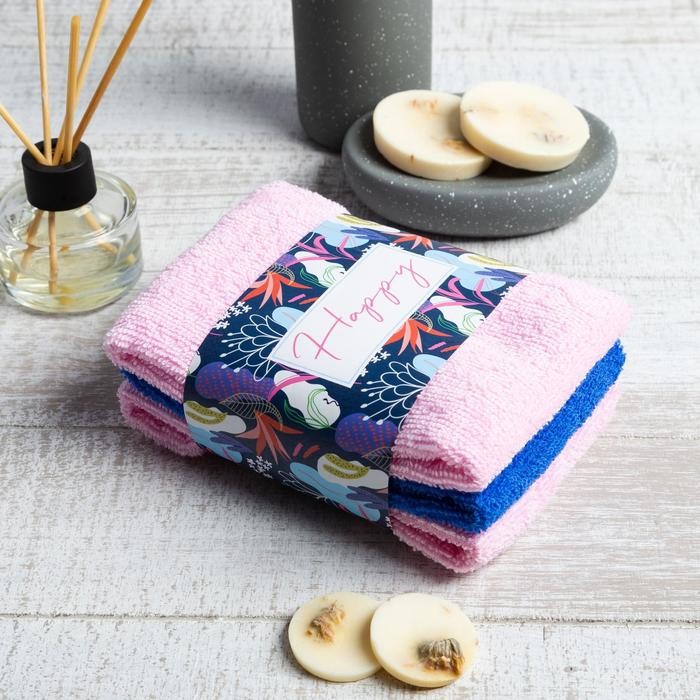 Набор махровых полотенец Happy 30×30 см — 3 шт, 100% хлопок 340 гр/м2