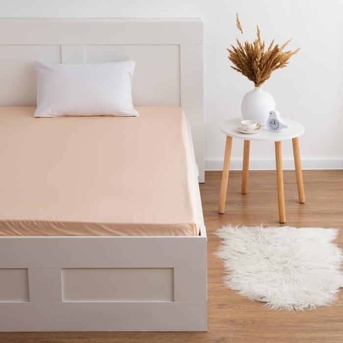 Простыня на резинке Этель 140*200*25 см, цв. бежевый, 100% хлопок, мако-сатин, 128 г/м²
