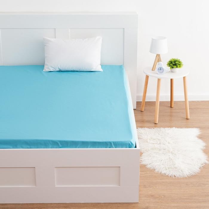 Простыня на резинке Этель 160*200*25 см, цв. голубой, 100% хлопок, мако-сатин, 128 г/м²