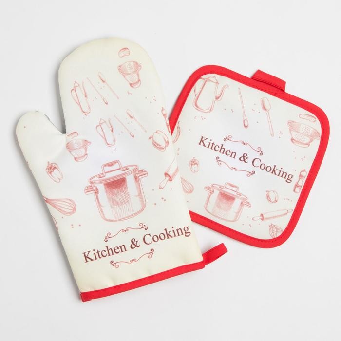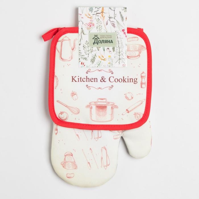 Кухонный набор Доляна Kitchen and cooking, прихватка 17*17 см, рукавица 26*16 см,100% п/э