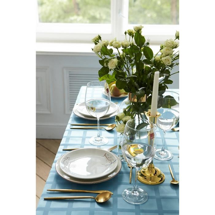 Скатерть Этель Geometry 150*300 +/-3см, цв.серо-синий, пл. 192 г/м2, хл с ВГМО