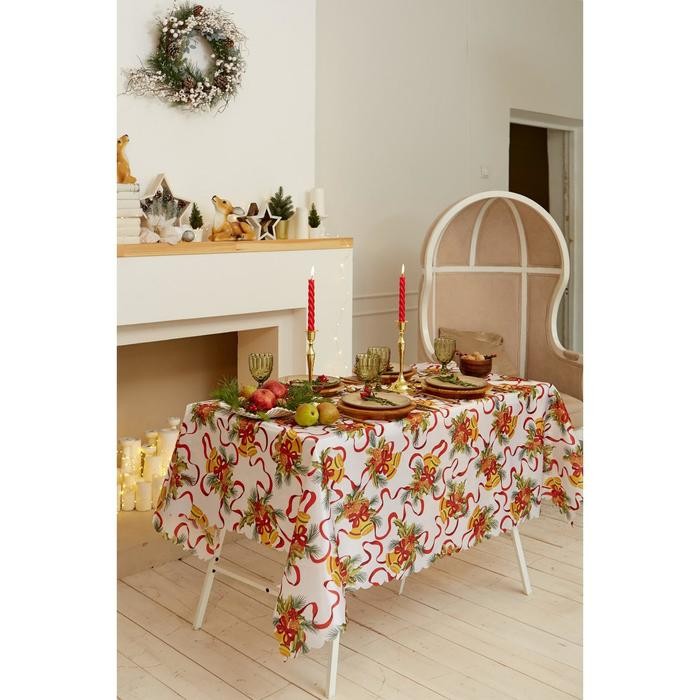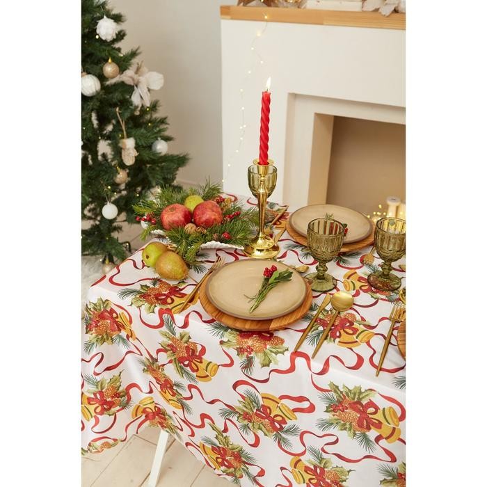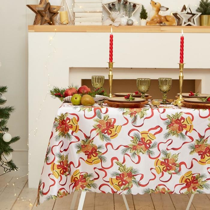 Скатерть Доляна «Новый год: Новогодние колокольчики» 145*180 +/- 2 см, 100% п/э