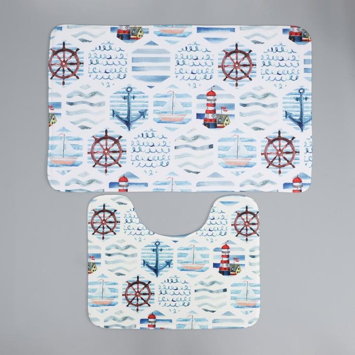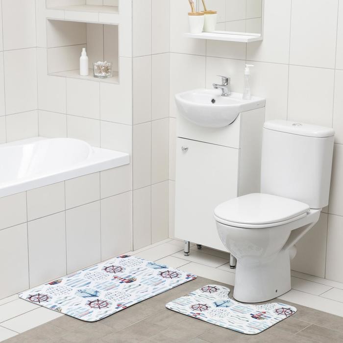 Набор ковриков для ванны и туалета Доляна «Морской», 2 шт: 50×80, 40×50 см