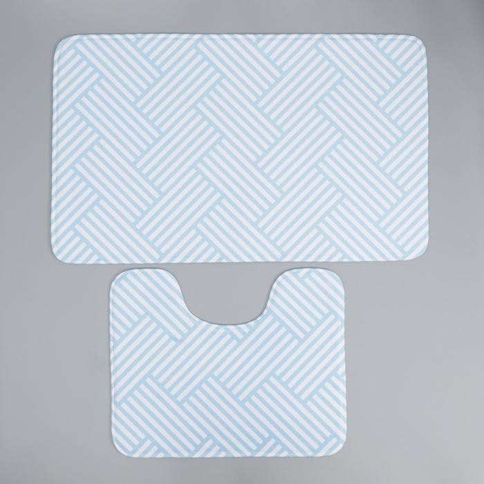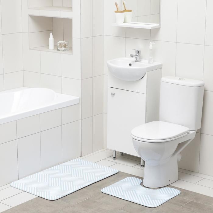 Набор ковриков для ванны и туалета Доляна «Паркет», 2 шт: 50×80, 40×50 см, цвет голубой