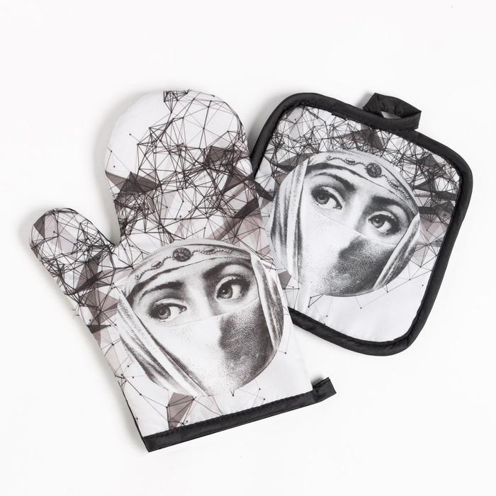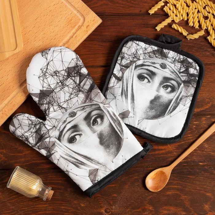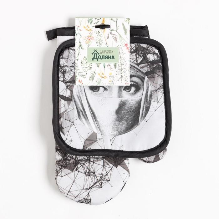 Кухонный набор Доляна «Лица», прихватка 17*17 см, рукавица 26*16 см,100% п/э