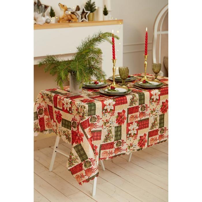 Скатерть Доляна «Новый год: Новогодние игрушки» 145*300 +/- 2 см, 100% п/э
