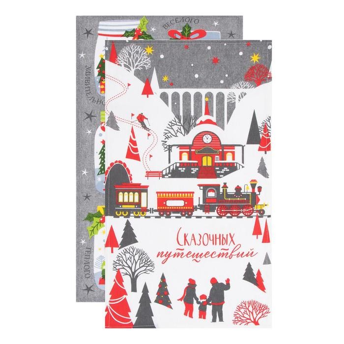 Набор кухонных полотенец Доляна «Волшебного года» 35х60см-2шт, 100% хл