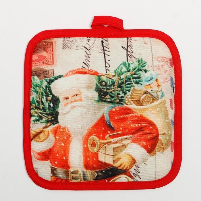 Кухонный новогодний набор Доляна"Новый Год», фартук 70×80 см, прихватка17х17см, варежка-прихватка 26х16см