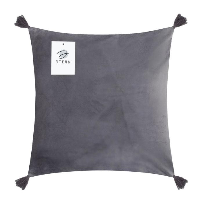 Наволочка на подушку с кисточками Этель цвет серый, 45×45 см, 100% п/э, велюр