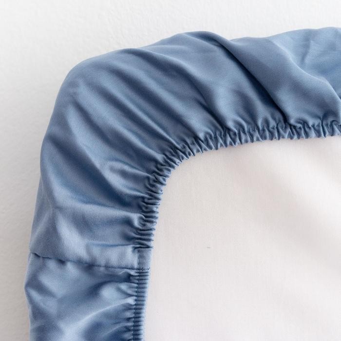 Простыня на резинке Этель 160*200*25 см, цв. синий, 100% хлопок, мако-сатин, 128 г/м²