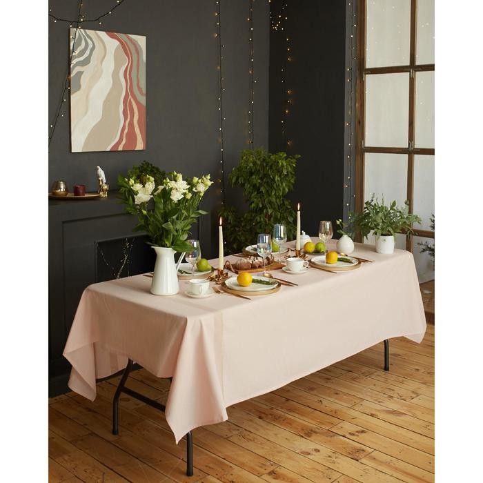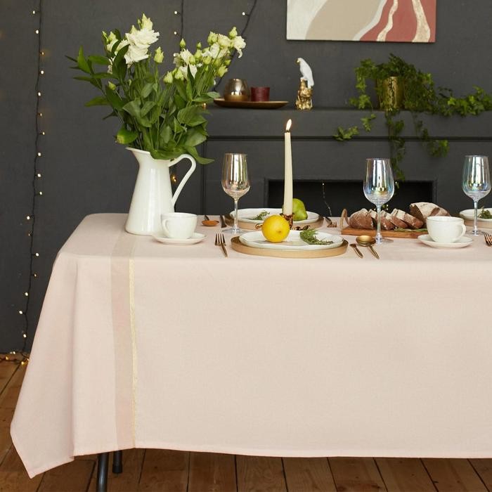 Скатерть «Этель» 110×165 см, цв. пудровый с золотой нитью, 100% хлопок, 163 г/м2