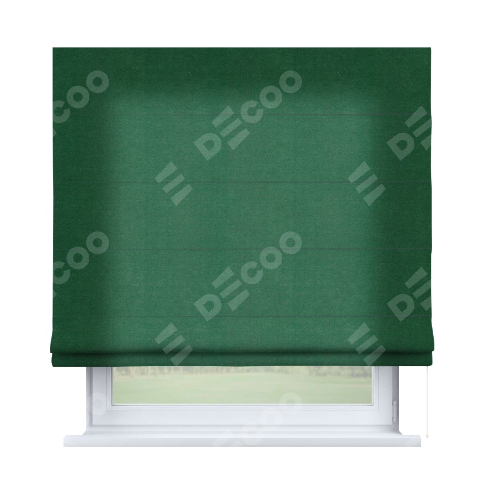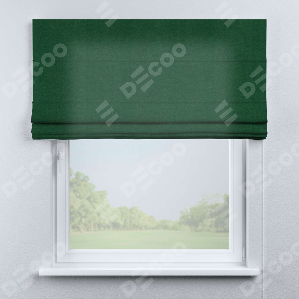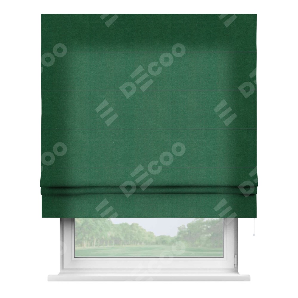 Римская штора производителя «Cortin», используется для проёма, пошита из ткани вельвет зелёный, артикул ткани 85546. Имеет универсальный механизм и подходит для монтажа: на потолок, на стену и в нишу.