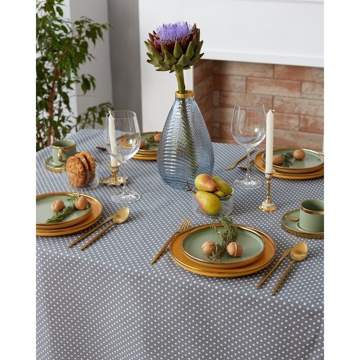 Набор Доляна скатерть 145х200см/салфетки 40х40см 4шт, Горох сер, 100%пэ, рогожка 200 гр/м