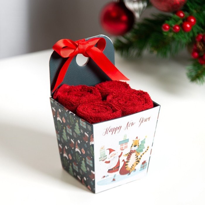Новогодние полотенца (подарочный набор 4 шт.) Этель Happy new year 30×30 см, хл 340г/м2