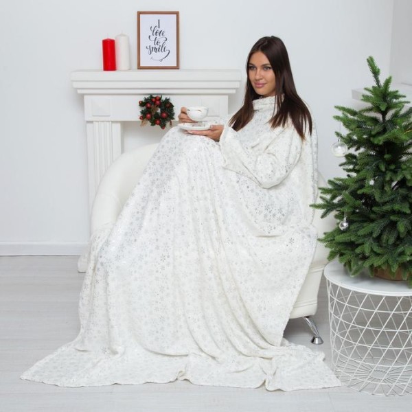 Плед с рукавами Этель «Серебряные снежинки» 150*200 см,100% п/э, корал-флис 220 гр/м2