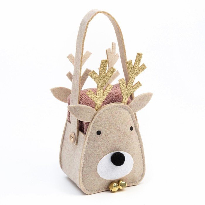 Полотенце в корзинке Экономь и Я «Олень» 30*60 см, цв. мокко, 100%хл, 320 г/м2