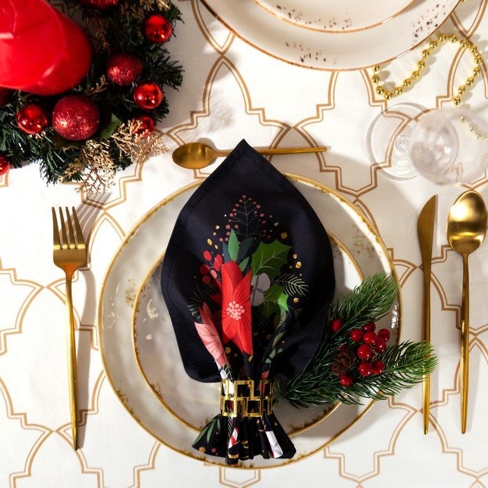 Салфетка декоративная «Happy new year» 40×40 см, 100% хл, саржа 190 гр/м2