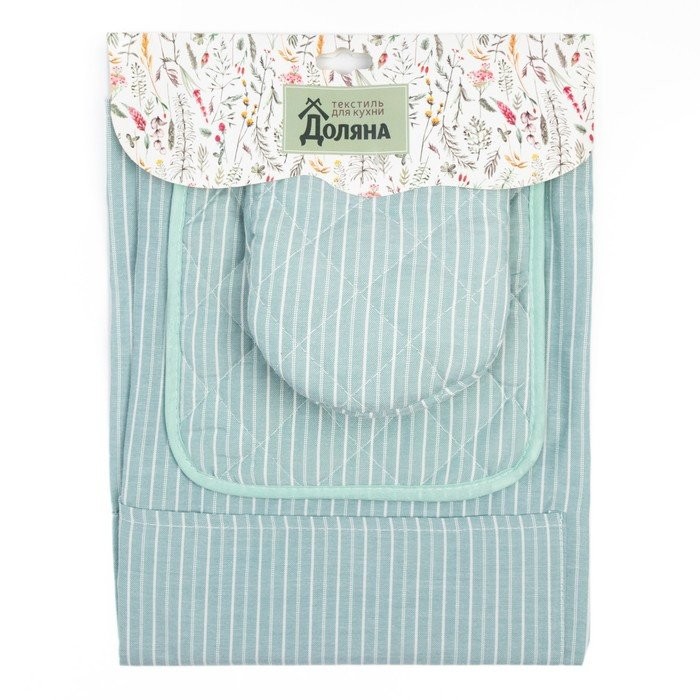 Кухонный набор «Полосы» фартук 60х70см, прихватка 20х20см, варежка 12х15см, цвет зеленый, 50%п/э, 50%хл