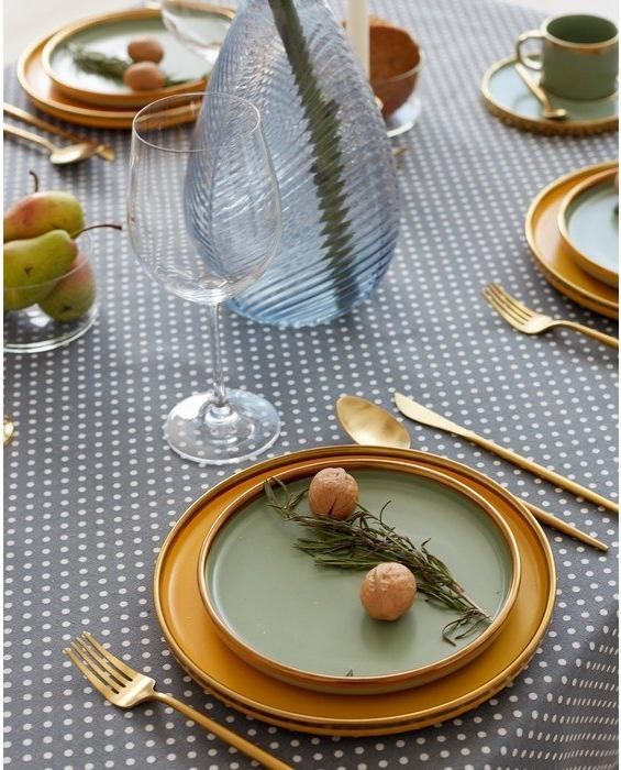 Скатерть Доляна 145х145см, Горох сер, 100%пэ, рогожка 200 гр/м