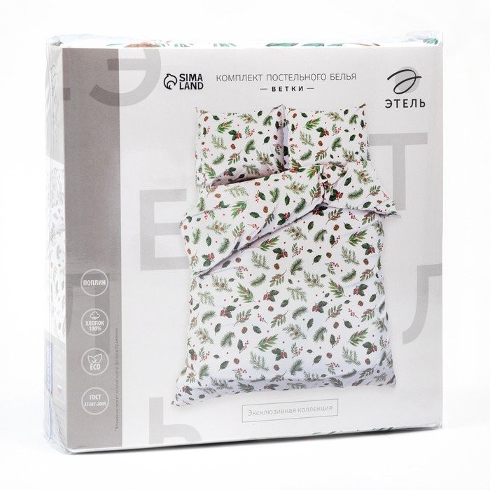 Постельное белье «Этель» Дуэт Ветки 143*215 см — 2 шт, 220*240 см, 70*70 см — 2 шт