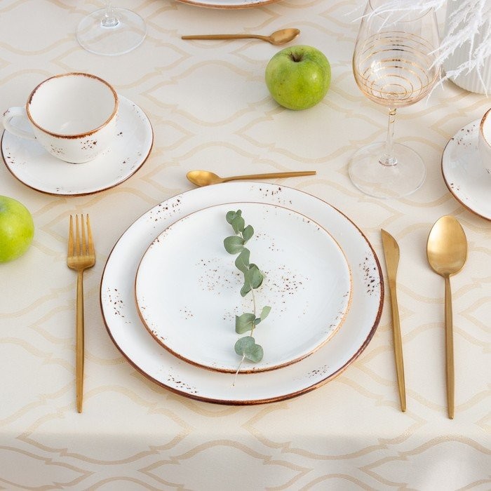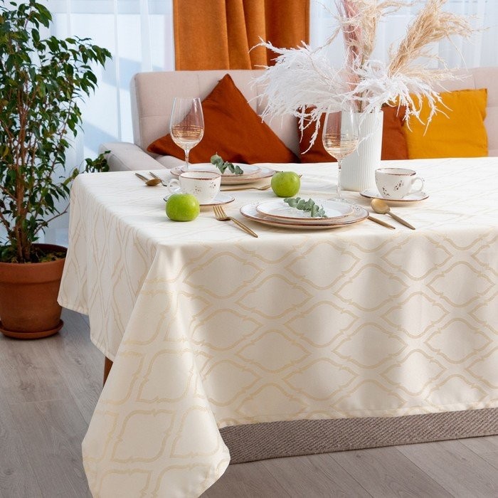 Скатерть Этель «Ажур» цв.бежевый, 142*220 +/-3 см, 115 ±10 гр,100%