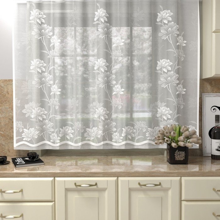 Тюль кухонная со шторной лентой, 160×260 см, цвет белый, пэ