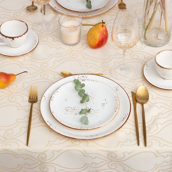 Скатерть Этель «Орнамент» цв.бежевый, 142*110 +/-3 см, 115 ±10 гр,100% п/э