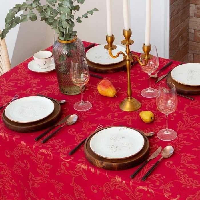 Скатерть Этель «Patterns» цвет красный, 142*220 +/-3 см, 115 ±10 гр,100% п/э