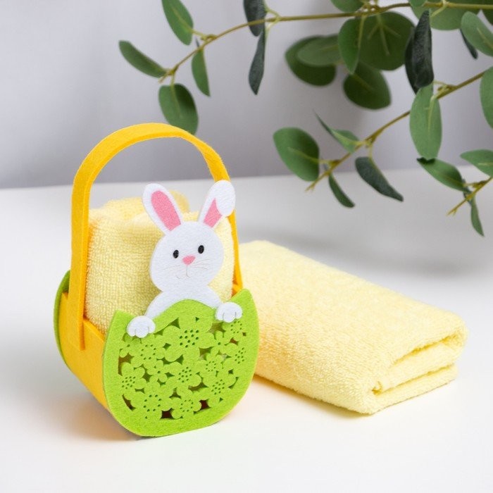Полотенце пасхальное в корзинке Этель «Зайчик» 30*60см, цв.желтый, 100%хл, 320 гр/м2