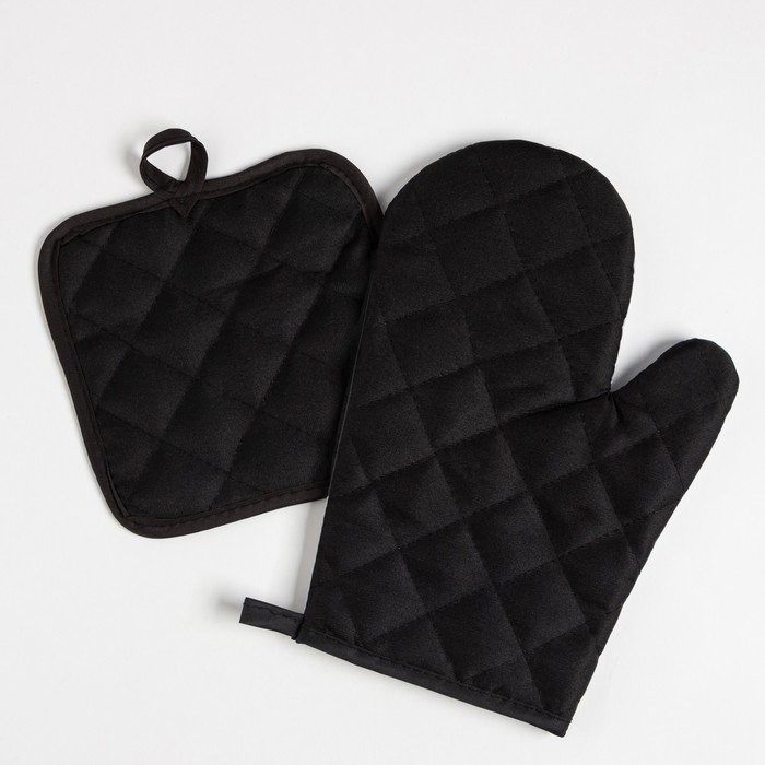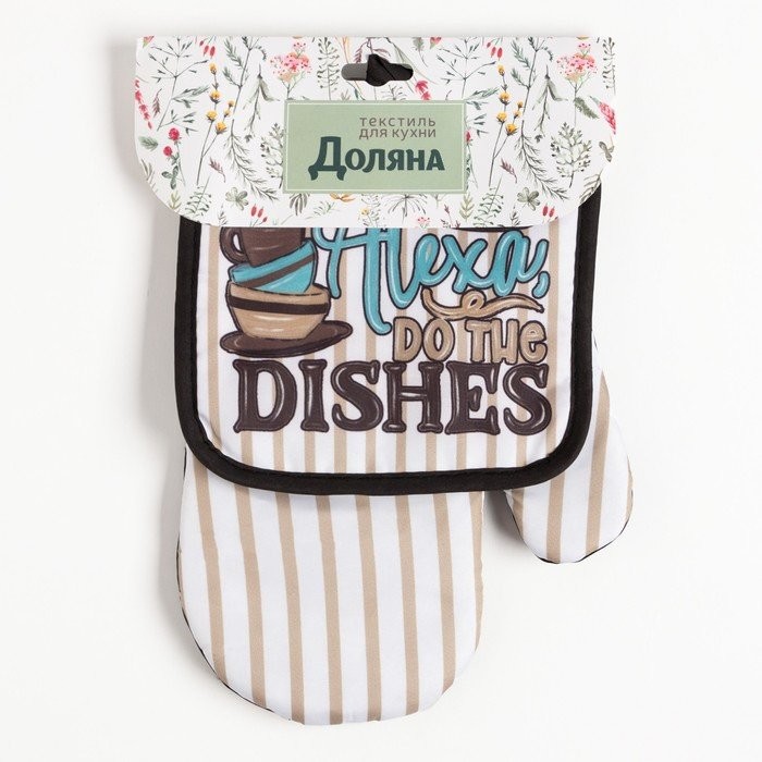 Кухонный набор (2 предмета) Доляна Dishes, прихватка 17×17 см, варежка 26×16 см, 100% п/э