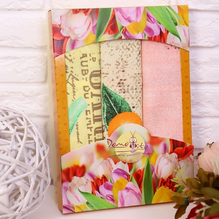 Набор полотенец в коробке Три фрукта 45×60 см, 3 шт, вафля, 160 гр/м2, хлопок 100%