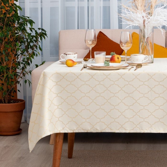 Скатерть Этель «Узор» цв.бежевый, 142*283 +/-3 см, 115 ±10 гр,100% п/э