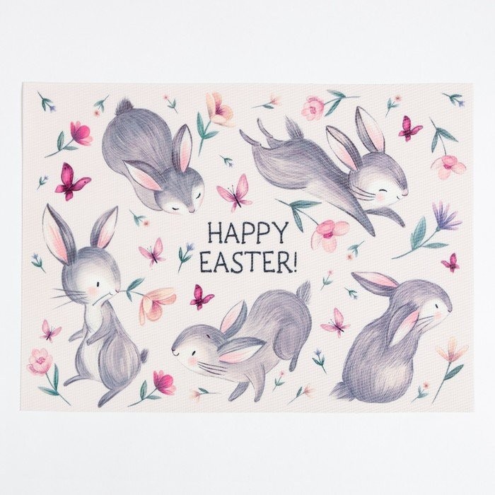 Салфетка на стол Доляна «Пасха» (серые зайчики) ПВХ 40×29 см