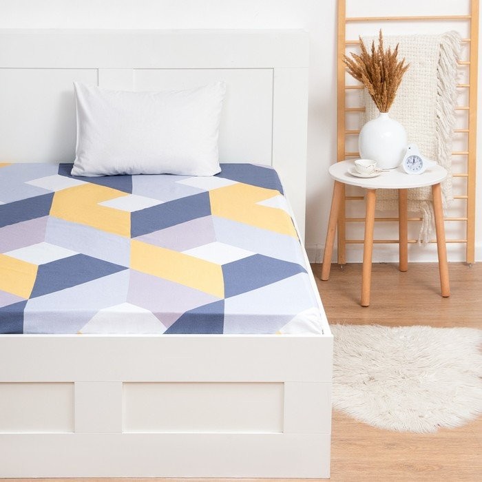 Простыня на резинке LoveLife 140*200*25см, «Треугольники», 100% хлопок, сатин, 125г/м²
