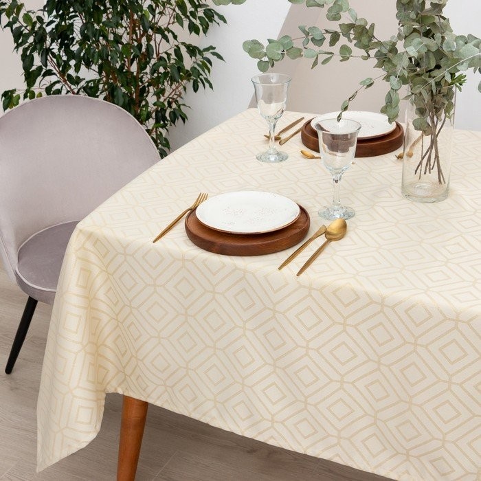 Скатерть Этель «Ромбы» цв.бежевый, 142*283 +/-3 см, 115 ±10 гр,100% п/э