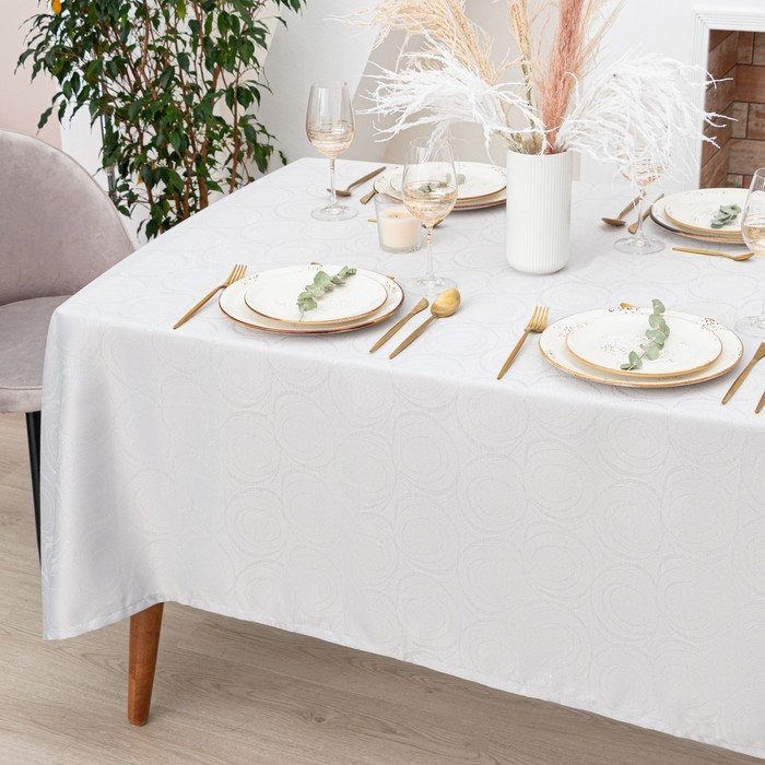 Скатерть Этель «Круги» цв.серебро, 142*110 +/-3 см, 115 ±10 гр,100% п/э