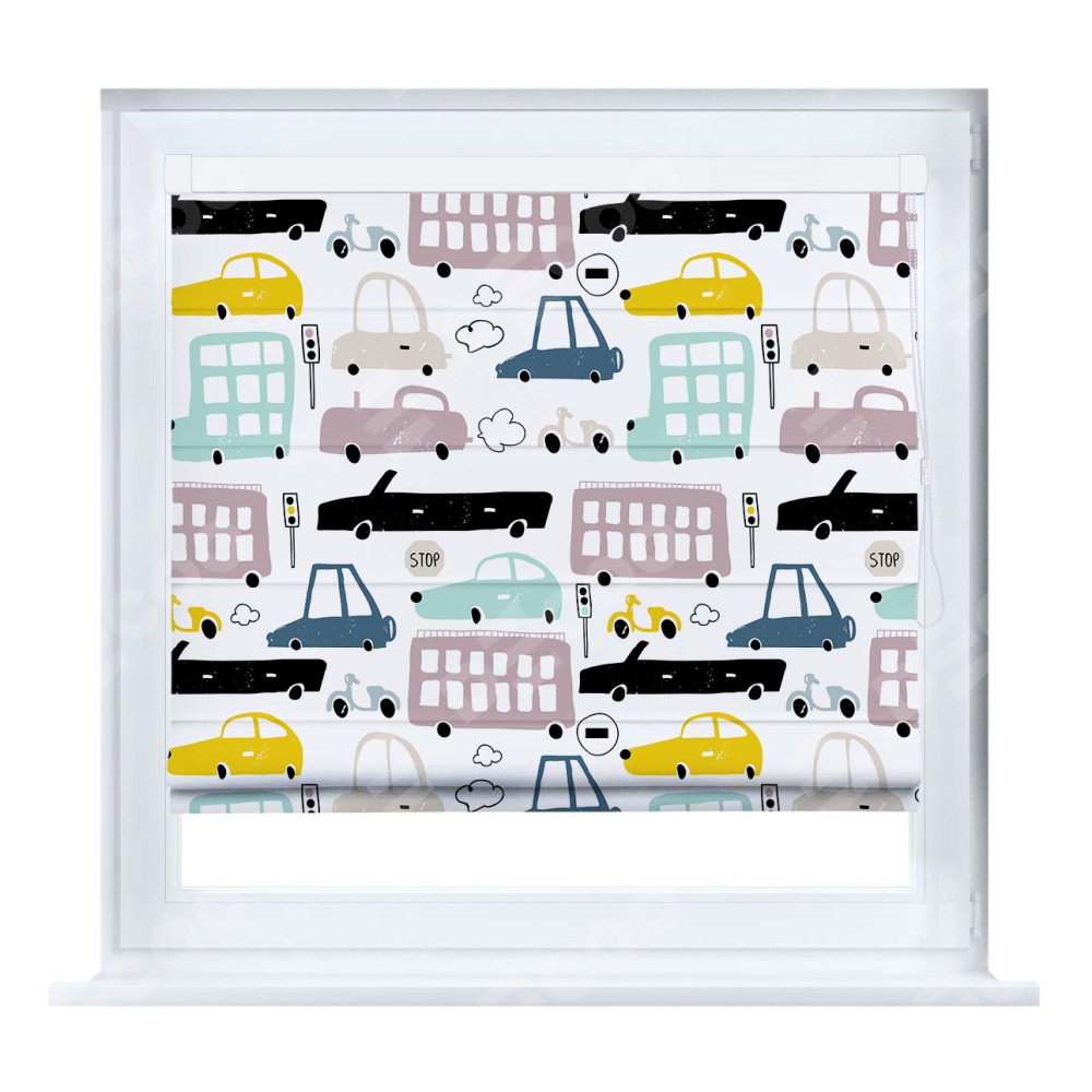 Римская штора «Кортин» кассетная «Красочный трафик» отлично подойдёт для интерьера: в детскую.