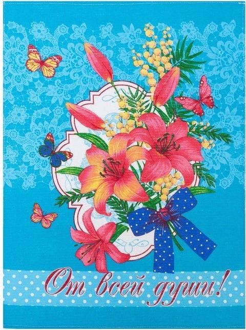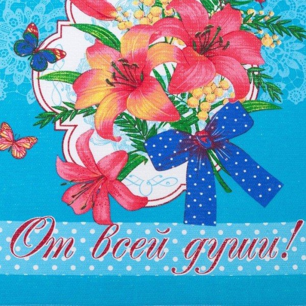 Полотенце в коробке 45×60 см, Лилия, бирюза, вафля, 160 гр/м2, хлопок 100%