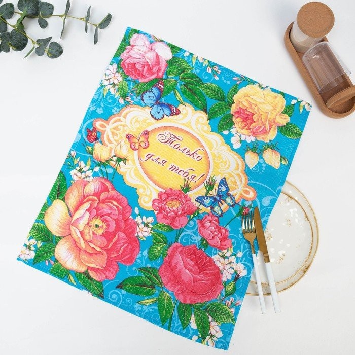 Полотенце 45×60 см, Английская роза, бирюза, вафля, 160 гр/м2, хлопок 100%