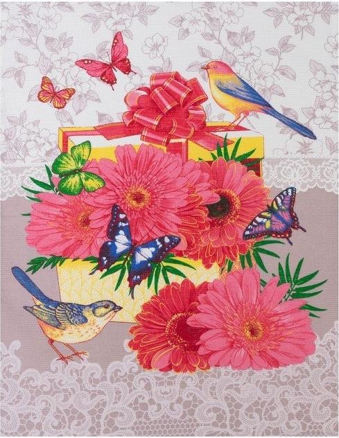 Полотенце 45×60 см, Герберы, розовый, вафля, 160 гр/м2, хлопок 100%