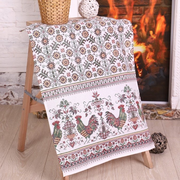 Полотенце 50×70 см, Петушок, рогожка, 170 гр/м2, хлопок 100%