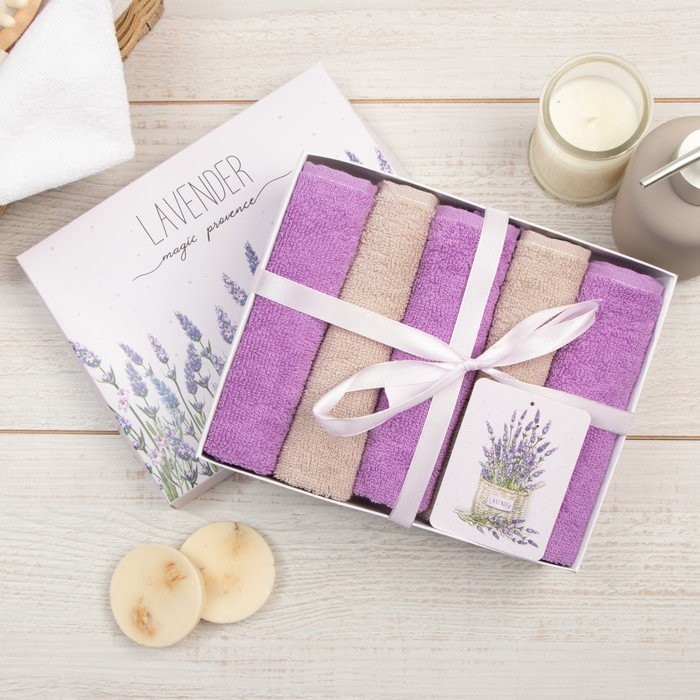 Набор махровых полотенец Этель Lavender 30×30 см -5шт, 100% хлопок 340 гр/м2