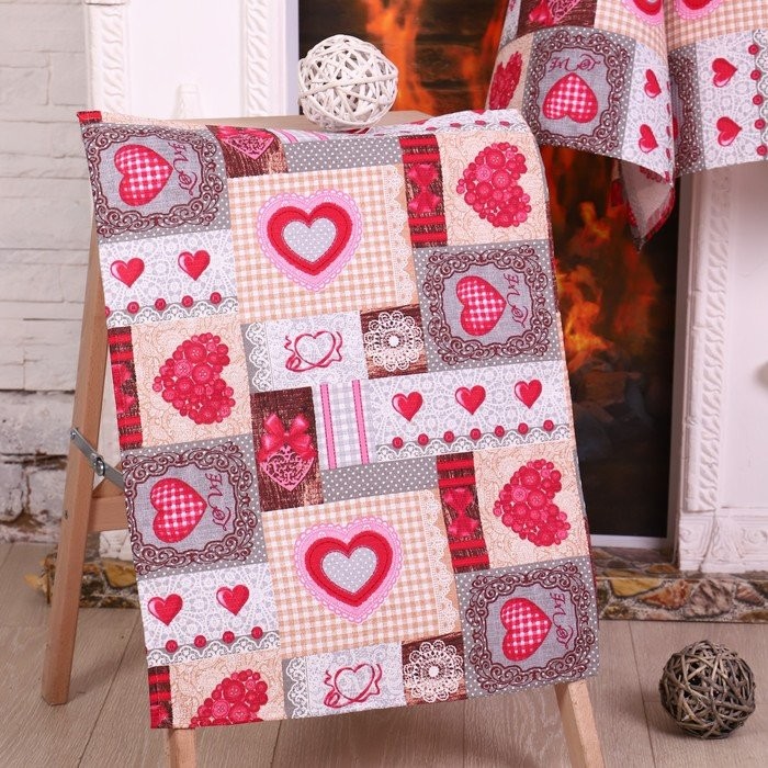 Полотенце 45×60 см, Сердца, вафля, 170 гр/м2, хлопок 100%
