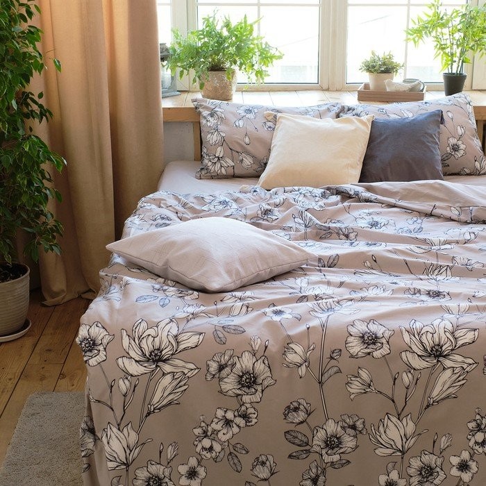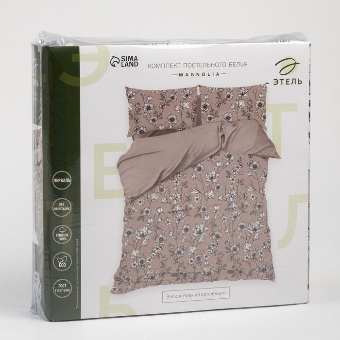 Постельное бельё Этель Евро Magnolia, пододеяльник 200×217 см, наволочки 50×70 см 2 шт, 100% хл, перк