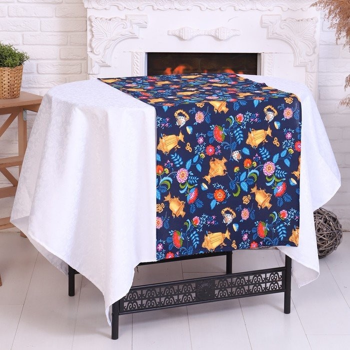 Дорожка-рушник 50×150 см «Самовары», синий, рогожка, хл 100%