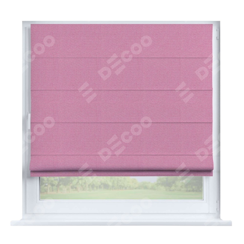 Римская штора производителя «Cortin», устанавливается на створку окна, пошита из ткани лён димаут розовый, артикул 16257. Штора шьётся по индивидуальным размерам, для данного типа римской шторы возможная ширина от 35 до 150 см., высота до 250 см.
