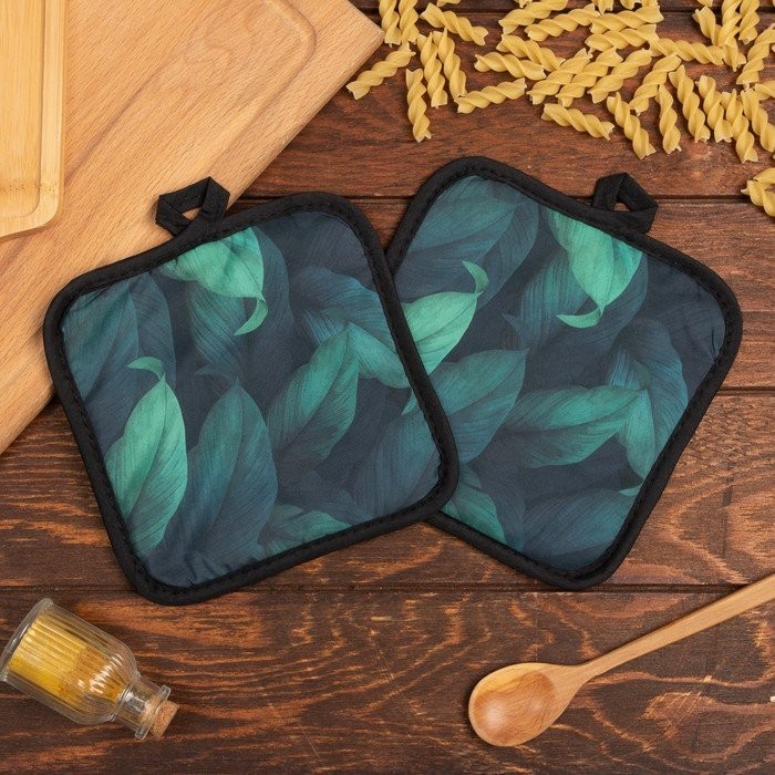 Кухонный набор (2 предмета) Этель «Листья», прихватка 17×17 см, 100% п/э